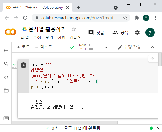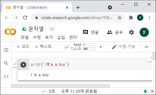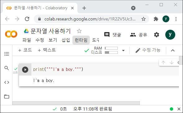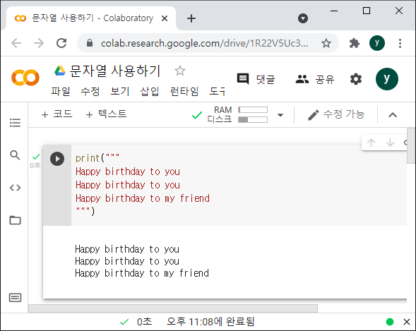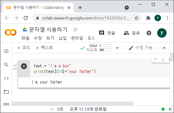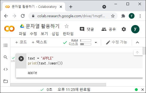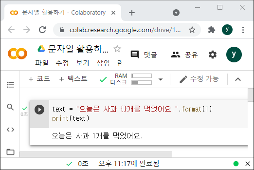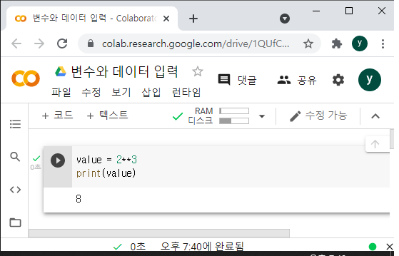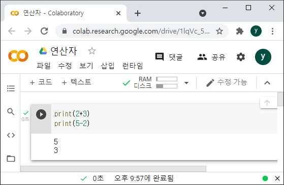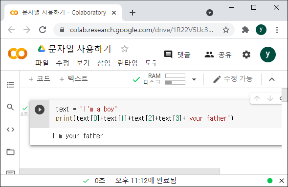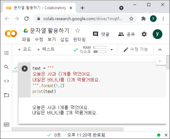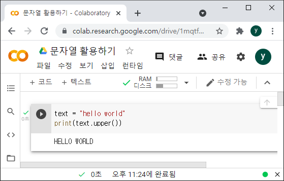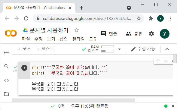여기까지 구글 코랩으로 파이썬을 실습할 수 있는 방법을 간단하게 정리했어요.