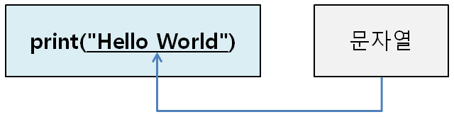 print() 안에 입력된 "Hello World"가 바로 문자열이에요.