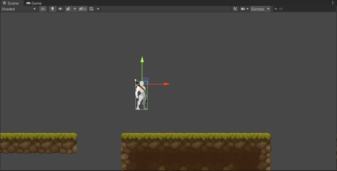 그리고 Scene을 플레이하면 지형 위에 캐릭터가 공중부양 하듯이 그려지는 모습을 볼 수 있습니다.