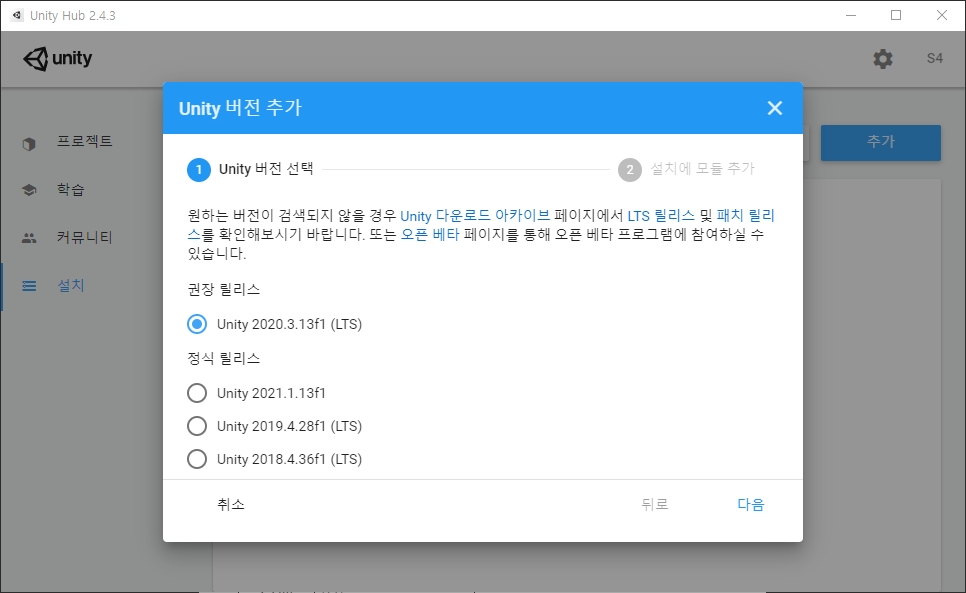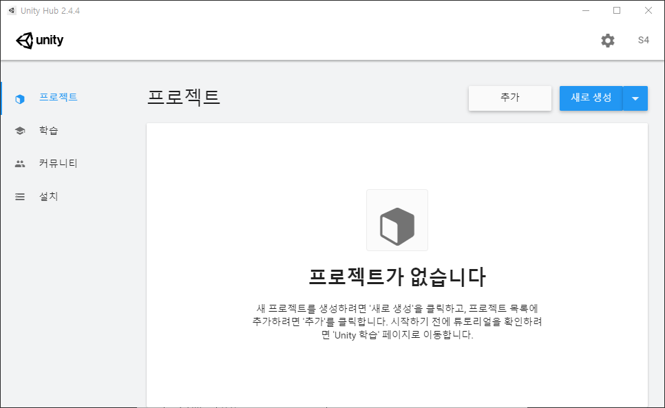 저도 튜토리얼을 작성하면서 유니티를 처음 설치했기 때문에 아래처럼 설정 화면이 노출되고 있습니다.