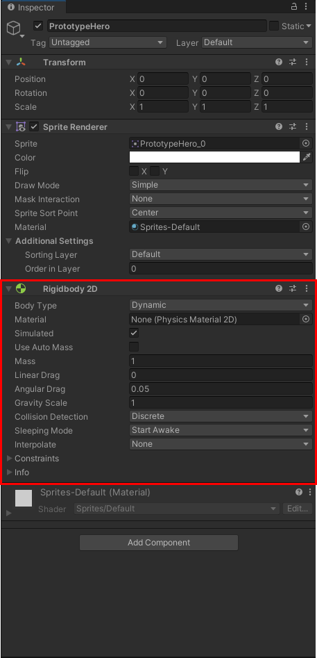 참고로, 콜라이더 2D는 물리적인 충돌을 감지하기 위한 요소입니다.
