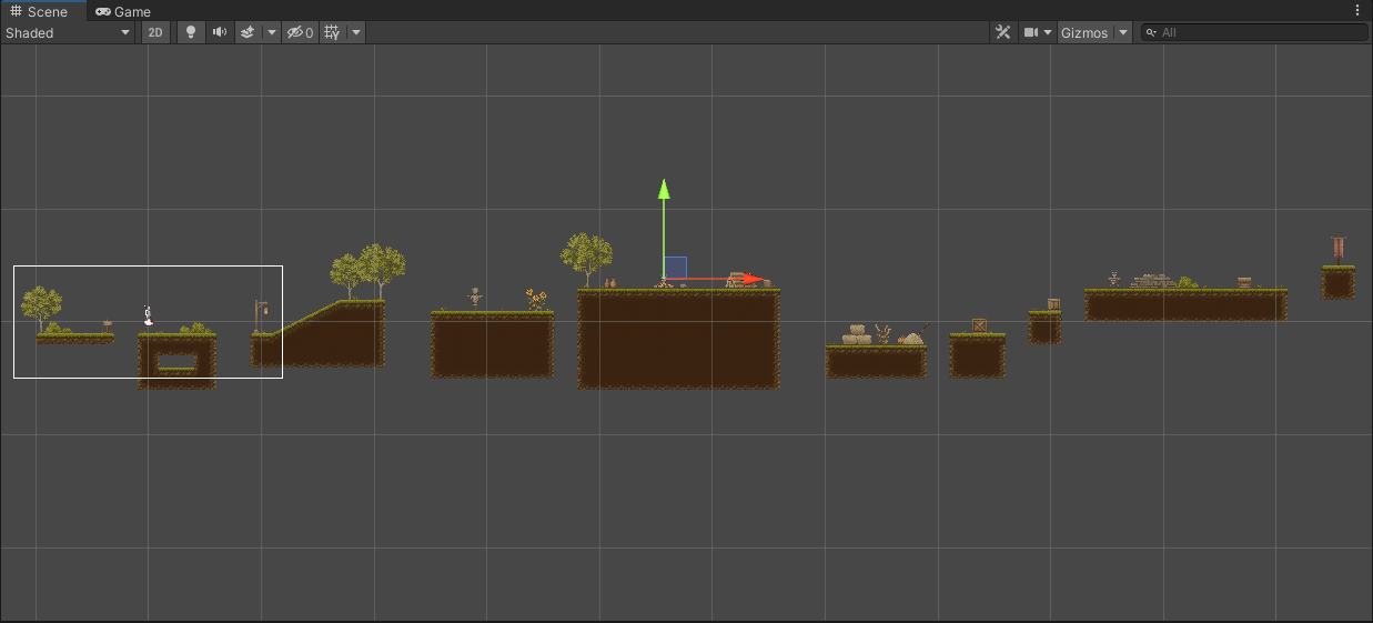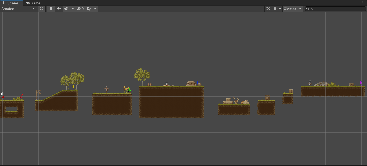 이제 Scene을 플레이해보면 아래처럼 확장된 지형에 적들이 배치된 것을 확인하실 수 있습니다.