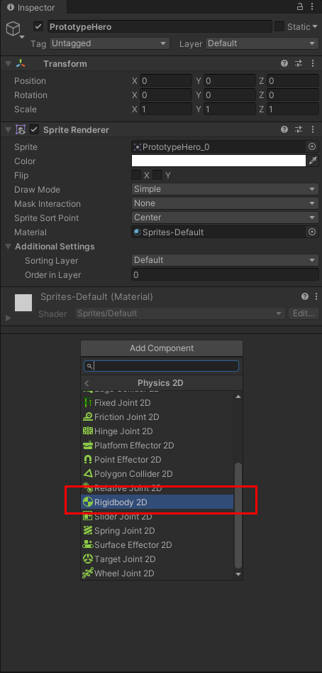 Rigidbody 2D 추가 (예시)
