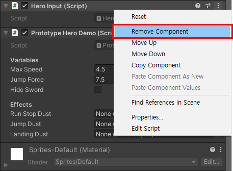 우선, Prototype Hero Demo 스크립트를 해제해 주세요.