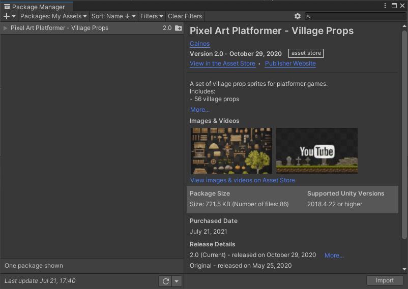 그후에 Import 버튼으로 에셋을 내 프로젝트에 불러오면 된다.