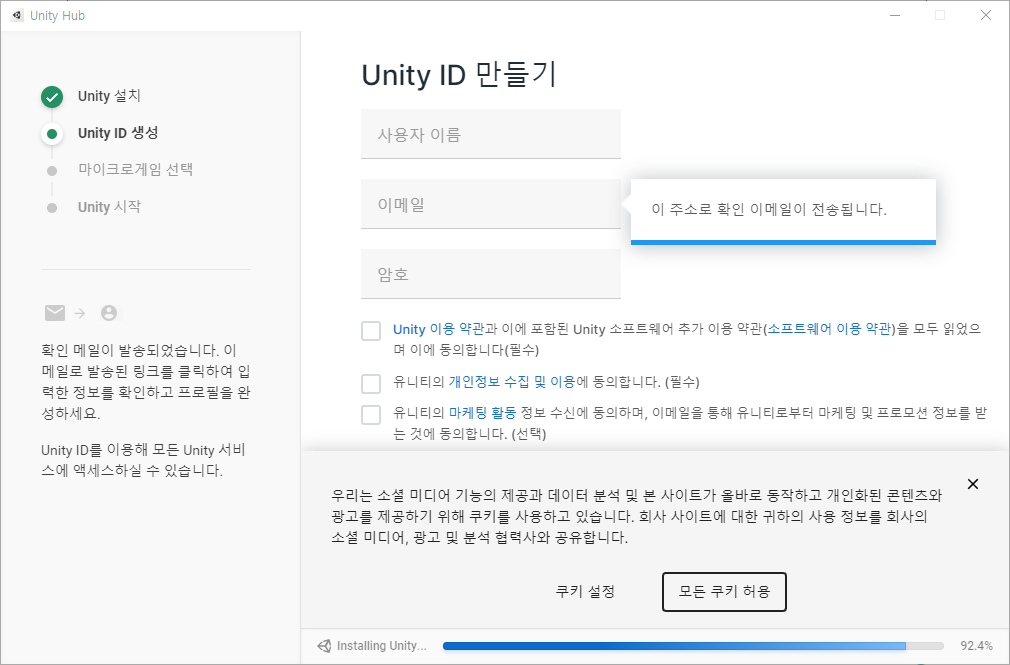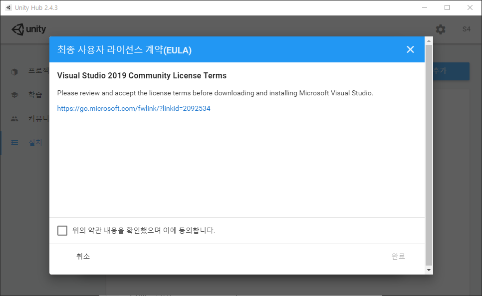 Unity Hub 실행 화면