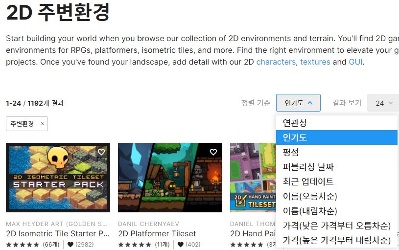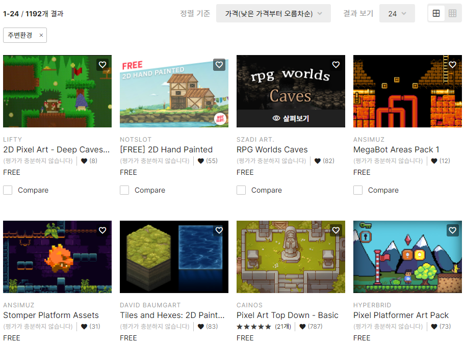 좋은 퀄리티의 에셋들은 유료로 결제해서 사용해야 되지만, 무료 에셋만으로도 괜찮은 것들이 많다.