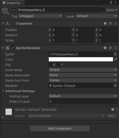 그러면 아래처럼 PrototypeHero_0라는 명칭의 오브젝트가 생성됩니다.
