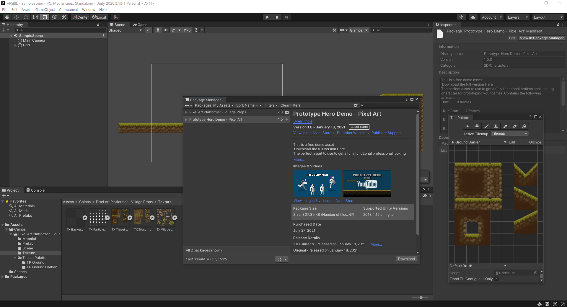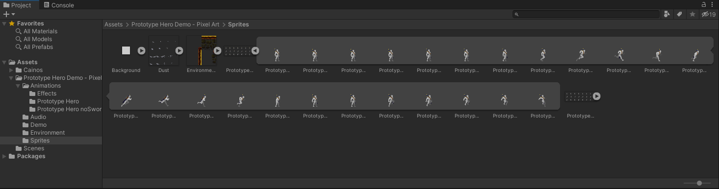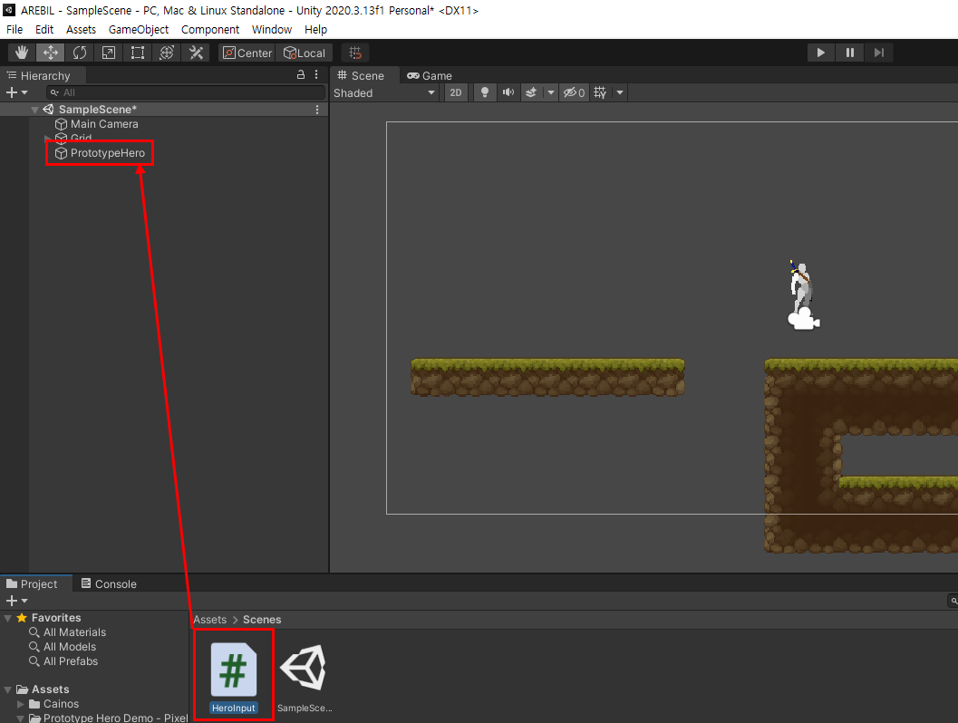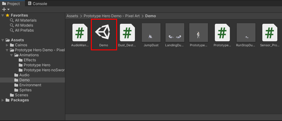 캐릭터 프리팹의 위치는 Assets > Prototype Hero Demo - Pixel Art > Demo 입니다.