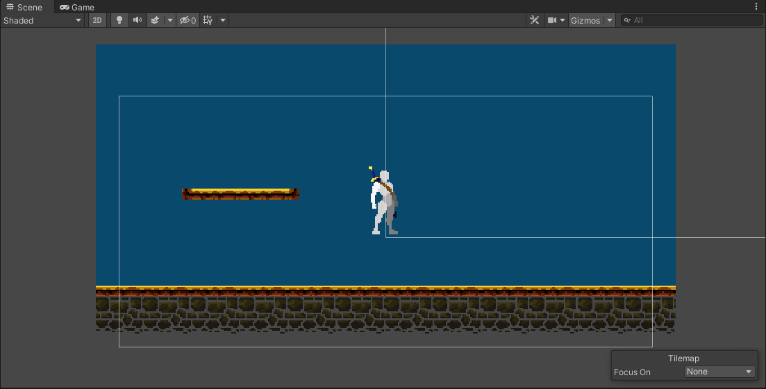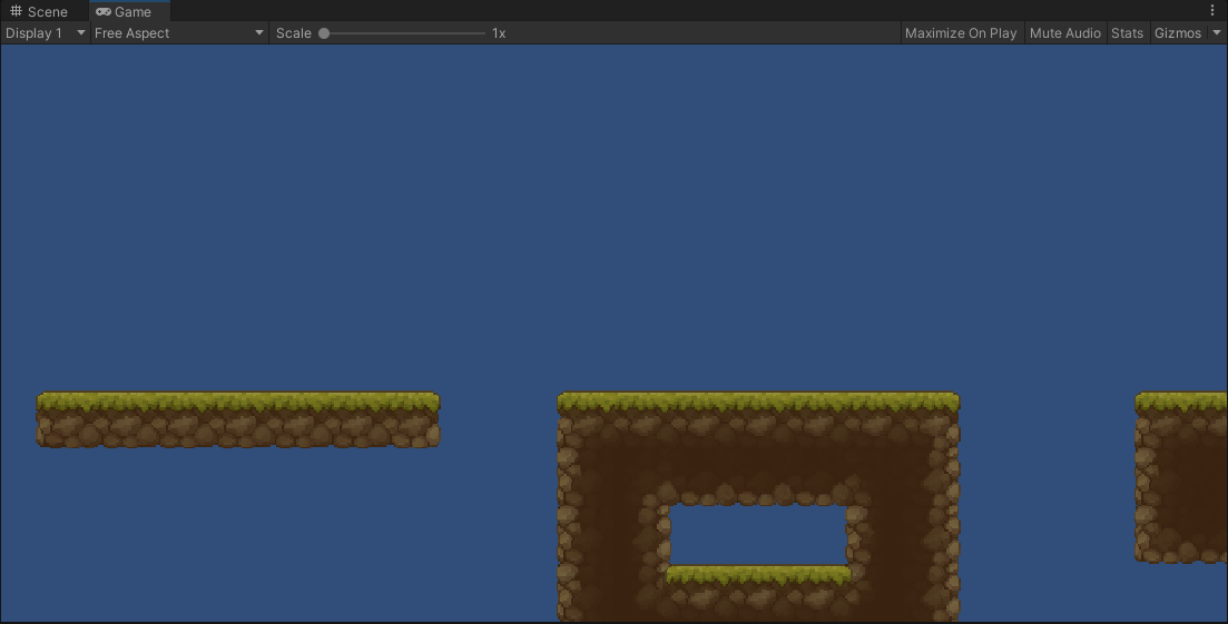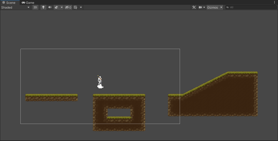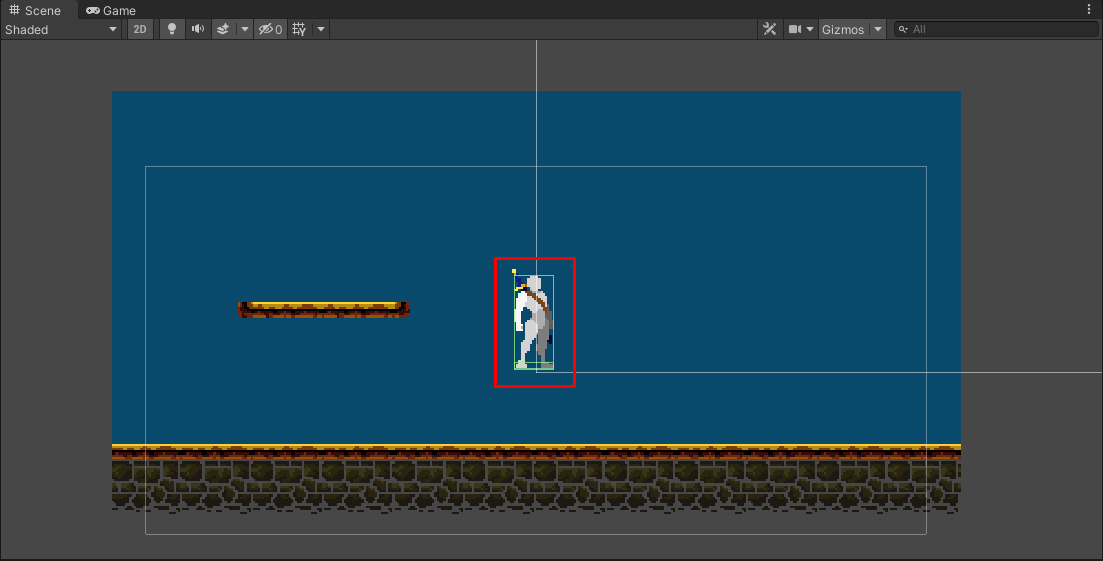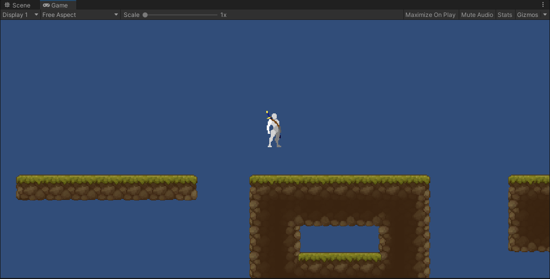 그리고 Scene을 플레이하면 지형 위에 캐릭터가 공중부양 하듯이 그려지는 모습을 볼 수 있습니다.