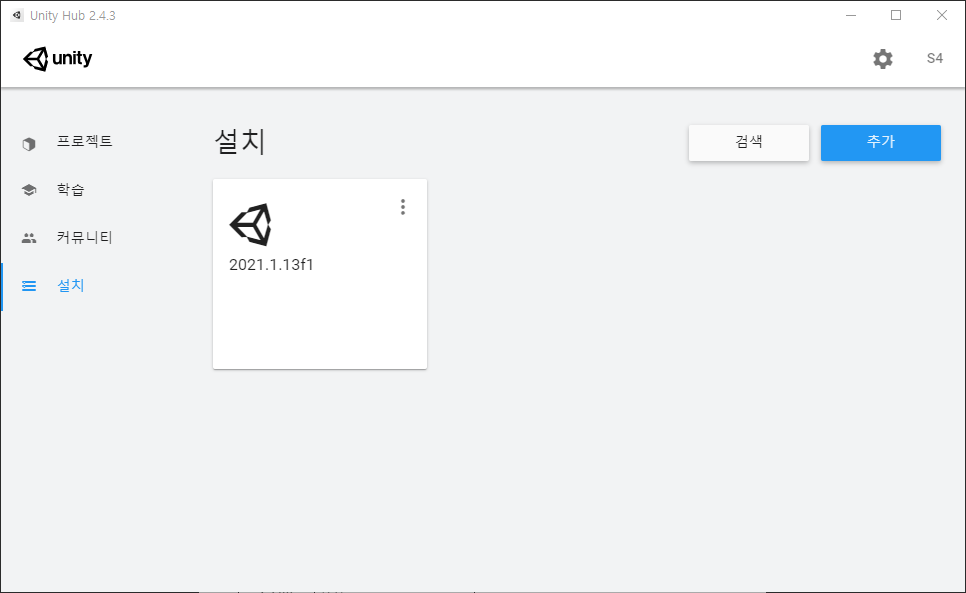 참고로 나는 기존 포스팅에서 유니티 2021.1.13f1 버전을 설치했지만, 확인하고 싶은 내용이 있어서 기존에 설치했던 Unity Hub와 유니티를 삭제했다. 그후에 D 드라이브에 Unity Hub와 유니티 2020.3.13f1 버전을 새로 설치했다. 만약에 기존의 포스팅을 통해서 2021.1.13f1 버전을 설치했다면, 굳이 설치된 것들을 삭제하고 2020.3.13f1 버전을 설치할 필요는 없다.
