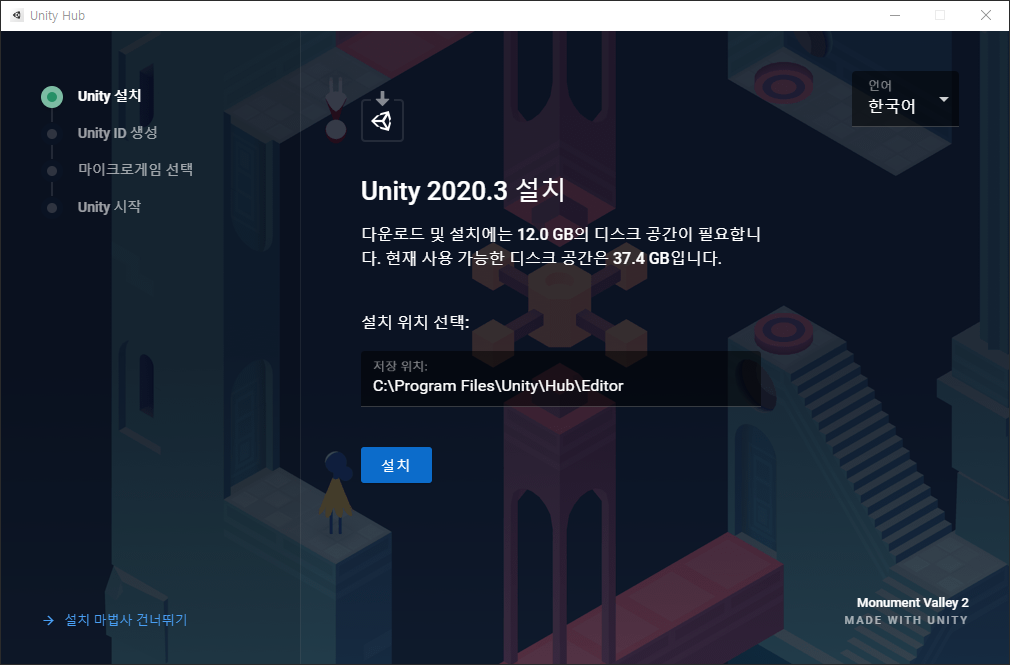 저장 위치의 경우, 자신이 기억하기 쉬운 폴더를 선택하자.