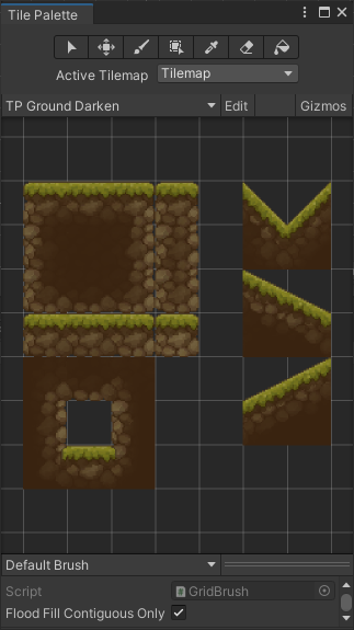 그리고 붓 모양의 브러쉬를 선택 후, 원하는 타일을 선택하면 지형을 생성할 준비가 완료된다.