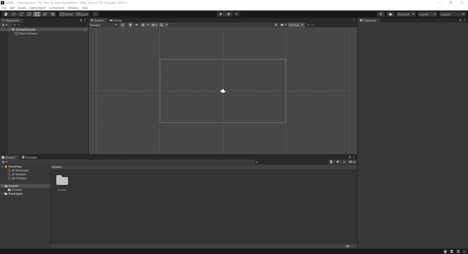 프로젝트를 생성하면 다음과 같이 유니티가 자동으로 실행된다.