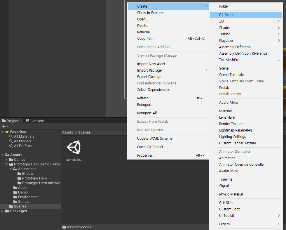 앞서 추가한 에셋을 유니티 프로젝트에서 확인해보자.