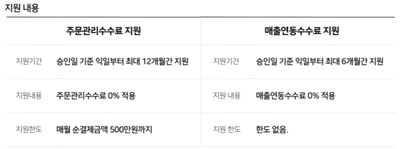 또한, 주문관리수수료 지원이 종료된 경우에는 매출연동수수료만 지원 받을 수 있다.