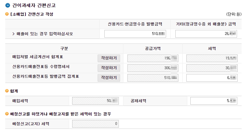 간이과세자로 부가세를 신고하다보면 아래와 같은 화면을 만나게 된다.