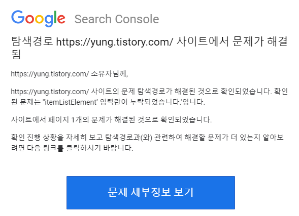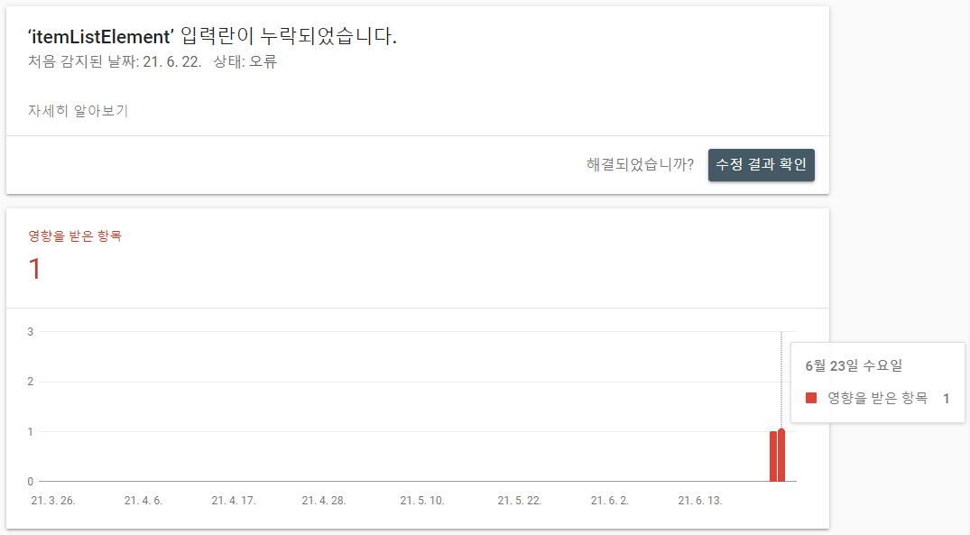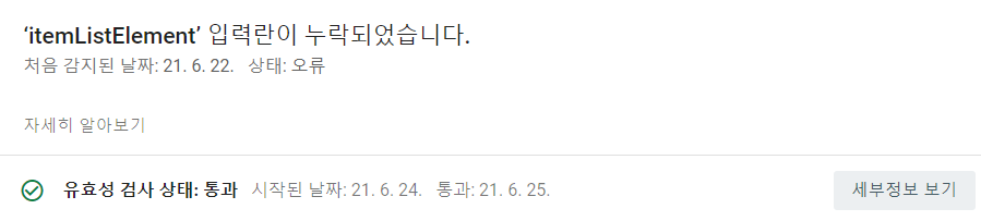 | 구글 서치 콘솔 메일 - 'itemListElement' 이슈 후기 (0) | 2021.06.29 |