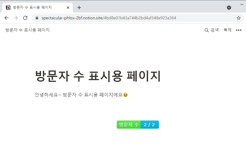 제가 위의 글에서 방문자 수 표시용 페이지를 Notion으로 만들었는데요.