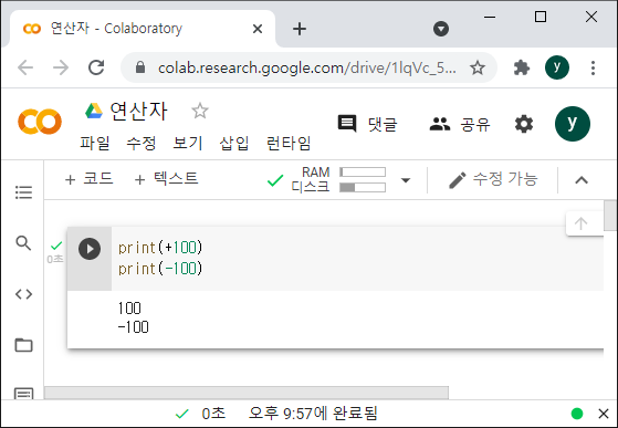 파이썬에서 양수와 음수를 나타내기 위해서는 숫자 앞에 부호를 붙여주시면 돼요.